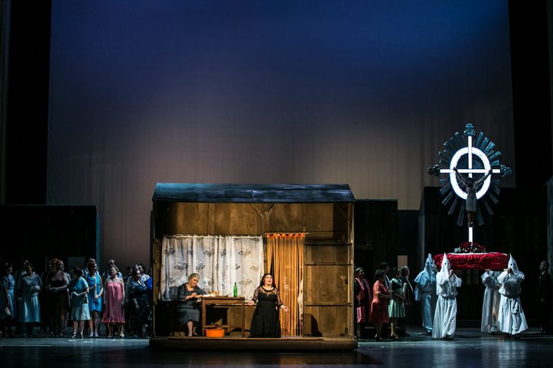 Georges Delnon 2014-es Parasztbecsület-produkciója (díszlettervező: Madeleine Schleich, jelmeztervező: Prisca Baumann) azegyik legmegkapóbb képpel indul, amit az elmúlt években az Opera színpadán látni lehetett: a halk bevezető zene alatt a gomolygó ködből lassanként egy ló és egy férfi körvonalai rajzolódnak ki. Az élő állat lenyűgöző látványa egyszerre költői, ugyanakkor hihetetlenül realista hatású. Mi sem fejezi ki jobban az operairodalom első verista operájának lényegét!