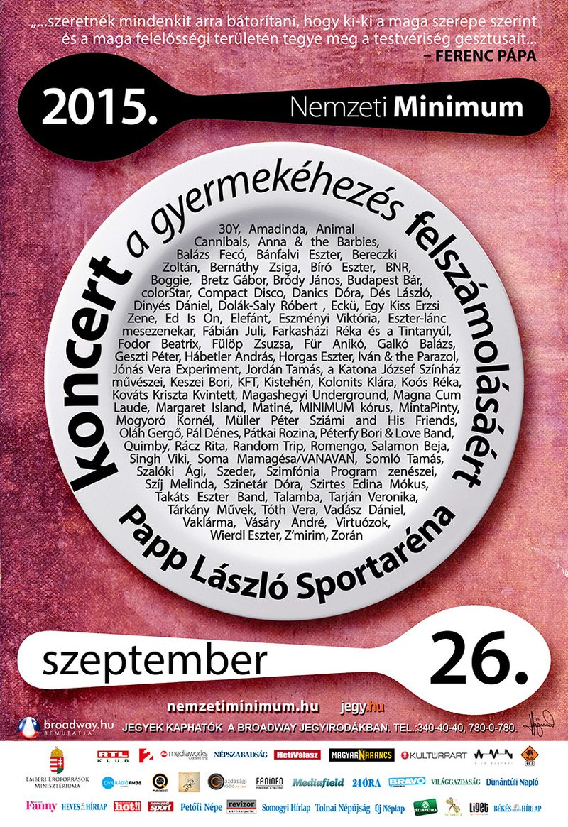 „A mindenkori kormány olyan hálózatot dolgozzon ki, és erre garantálja a fedezetet a mindenkori költségvetésben, amellyel minimalizálni lehet az éhező gyerekek számát Magyarországon” – ezzel a céllal jött létre a Nemzeti Minimum. A látvány- és díszlettervező Horgas Péter indította el ezt a civil kampányt, amikor egy tanulmányból szembesült: ma Magyarországon legalább 40 ezer gyerek nap mint nap nem jut minőségi ételhez, és több mint százezer fiatal rendszeresen éhezik. Kiállás és kiáltás a Nemzeti Minimum szeptember 26-i koncertje a Papp László Sportarénában – több mint száz előadóművésszel.