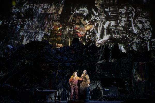 Egy sziklás hegy lábánál Wotan magához hívja a mélyből Erdát, a Föld istennőjét, hogy az istenek sorsáról érdeklődjön nála. Erda kitér a válasz elől és visszatér örök álmához, Wotan pedig beletörődik az istenek elkerülhetetlen végzetébe. Nem marad más reménye, csak Brünnhilde és Siegfried. Amikor Siegfried útja közben összetalálkozik vele, kigúnyolja a főistent, akit egyszerű öregembernek néz. A Vándor megpróbálja útját állni, de Siegfried egy kardcsapással darabokra töri az öreg lándzsáját: ugyanazt a lándzsát, amely évekkel korábban a Nothungot törte darabokra. A Vándor/Wotan csatát vesztve visszavonul.