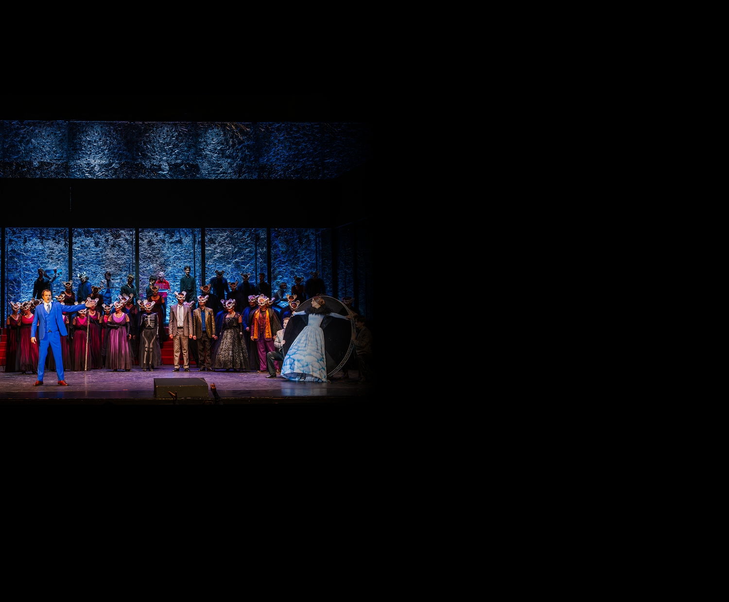 Nekem azok a zavarbaejtő privát partyk jutottak eszembe, ahová előszeretettel hívnak előadó- vagy képzőművészeket a házigazdák, hogy vendégeiket szórakoztassák, lenyűgözzék. Ez régen is így volt, ma is így van. Innen jött az ötlet, hogy a jelmezesek balettjének témája a Hófehérke meséjének furcsa parafrázisa legyen, ami fonák módon egy kicsit Violetta történetére is rímel: egyszerre elvenedik meg benne egy világszép lány idealizált szerelme, és a halál is. Az extravagáns partyk adták azt az ötletet is, hogy Floránál egy bizarr kiállítás megnyitója zajlik éppen: a kiállított tárgy egy hatalmas medencecsont, illetve a vendégek is annak egy kisebb mását viselik fejdíszként. A medencecsont a koponyához hasonlóan a halál attribútuma; ám míg az utóbbi az emberi értelemre, az előbbi a nemiségre, a szexualitásra utal. Ebben az előadásban ez a tárgy vált jelképévé ennek a züllött, értelmiségi demi-monde társaságnak, amibe ugyanúgy beletartoznak írók, orvosok, mint nagyvilági ifjak vagy kurtizánok. Violetta ismét hosszú idő után mutatkozik újra társaságban, és ezúttal is árgus szemmel figyeli őt a pletykára éhes tömeg, hiszen hallották, hogy a nő szakított Alfredóval és már újra a báróval van. Amikor Violetta belép, csontváz-szerű emberek fogadják, és egy üvegkoporsón kínálják hellyel. Ezekkel a hatásokkal is azt az összetett lelkiállapotot szerettem volna érzékeltetni, amiben Violetta ezen a bálon van: a betegség lázas delíriumát, a halál leheletét, a vívódást, kétségbeesést, amit végül a nyilvános megaláztatás követ.
